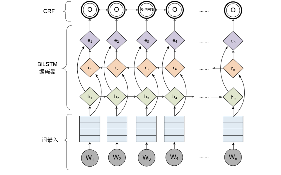 - BiLSTM,就像深度学习这个黑盒子那样,可以很好的学习到特征,但是在学习和预测时,无法考虑到语法以及句子中各词之间的相关性,比如I-PER标签不可能跟在B-LOC之后。